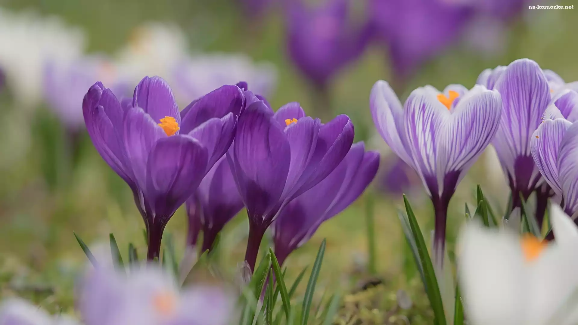 Kwiaty, Krokusy, Ciemnofioletowe, Jasnofioletowe na Komórkę
