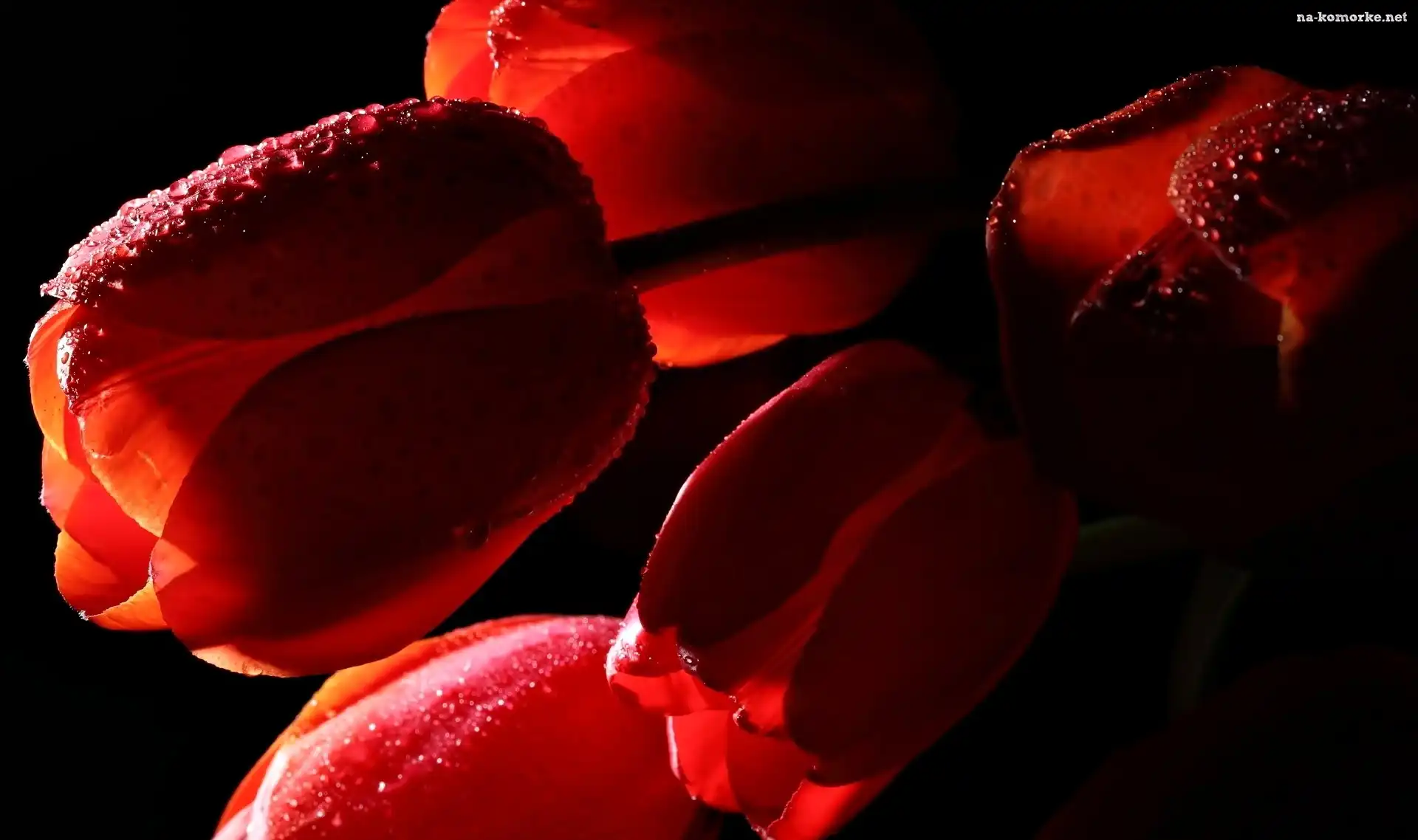 Kwiaty, Krople, Czerwone, Tulipany na Komórkę