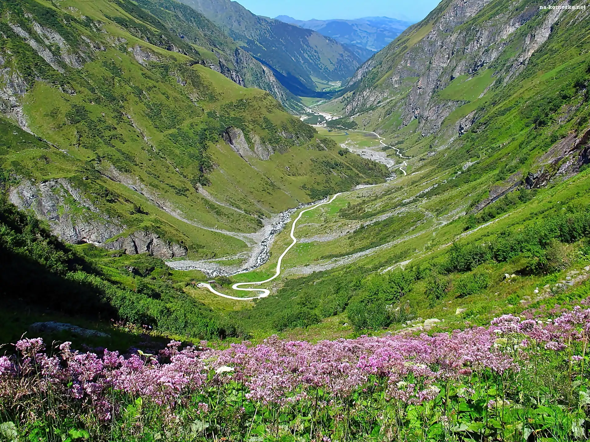 Kwiaty, Góry, Wąwóz, Droga, Łąki na Komórkę