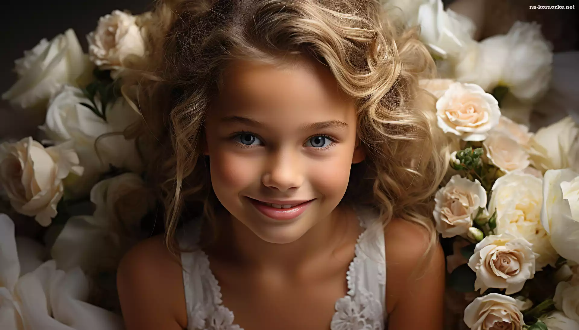 Włosy, Twarz, Dziecko, Kwiaty, Długie, Kręcone, Dziewczynka na Komórkę