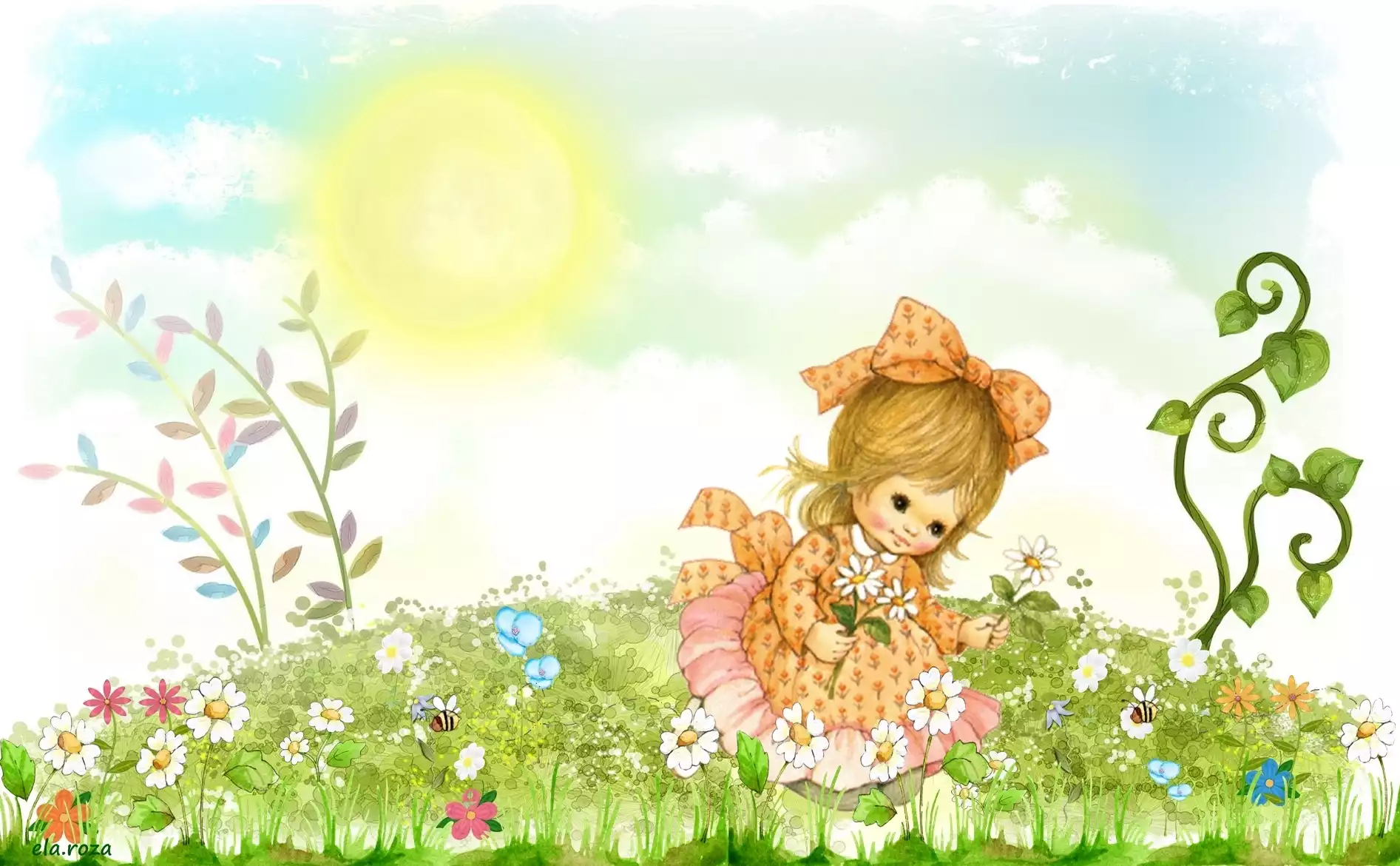 Kwiaty, Kraina, Szczęścia, Dziewczynka, Łąka na Komórkę