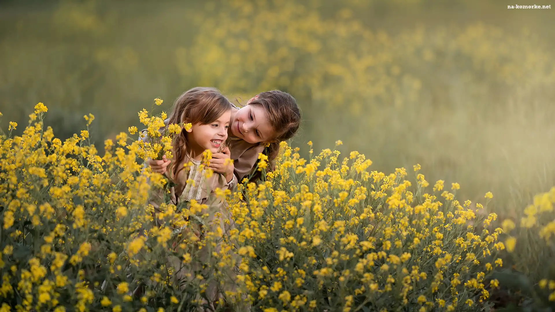 Kwiaty, Dzieci, Dwie, Dziewczynki, Rzepak na Komórkę