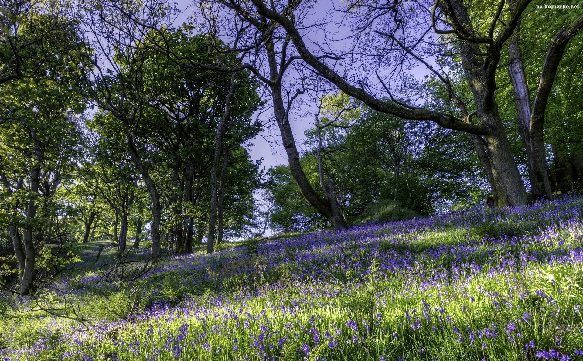 Kwiaty, Polne, Drzewa, Łąka, Fioletowe, Polana na Komórkę