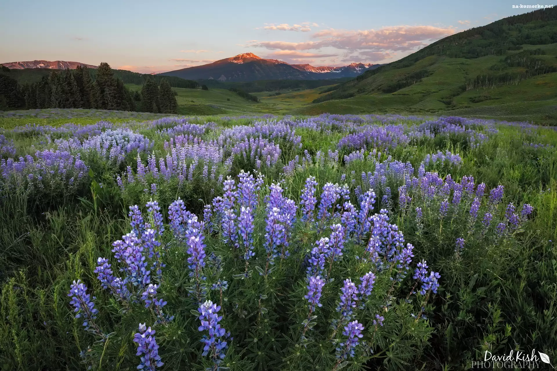 Kwiaty, Wzgórza, Góry, Lato, Fioletowe, Łubin na Komórkę