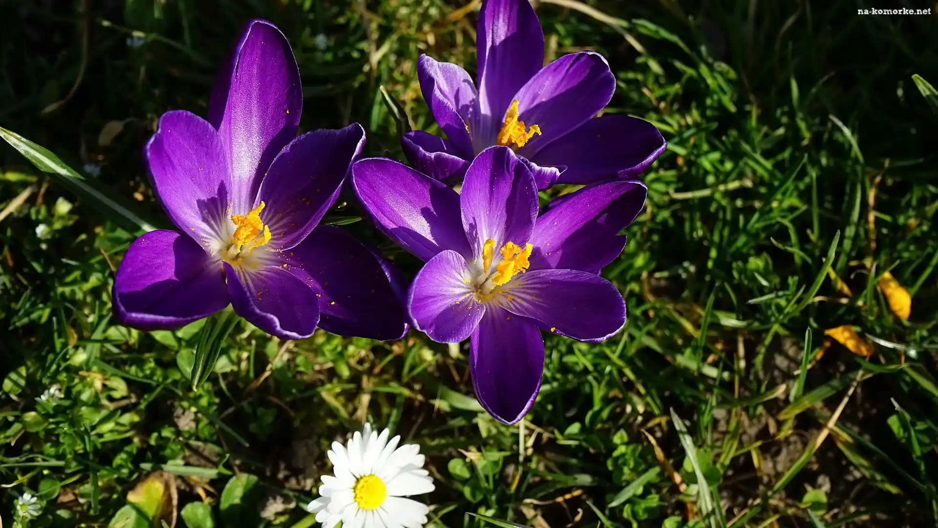 Kwiaty, Liście, Fioletowe, Krokusy na Komórkę