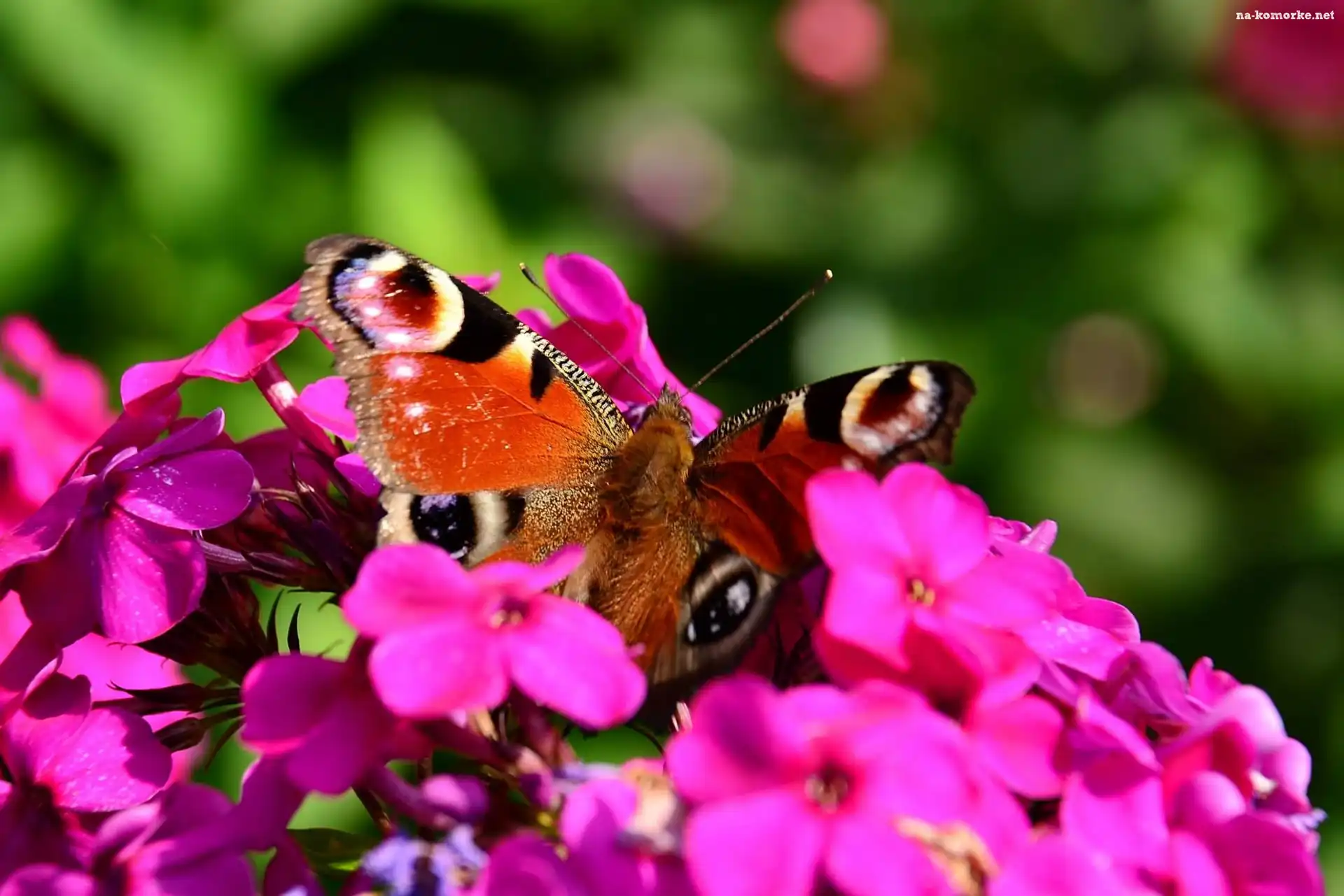 Fioletowe, Kwiaty, Motyl na Komórkę