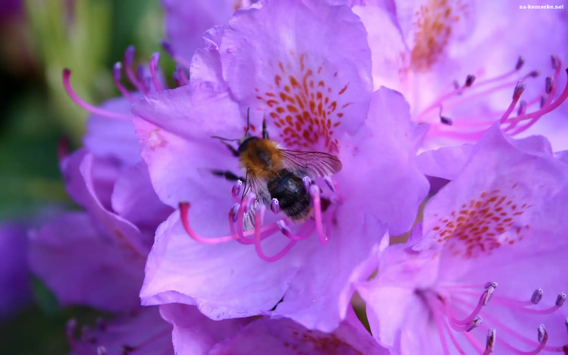 Fioletowe, Kwiaty, Pszczoła na Komórkę