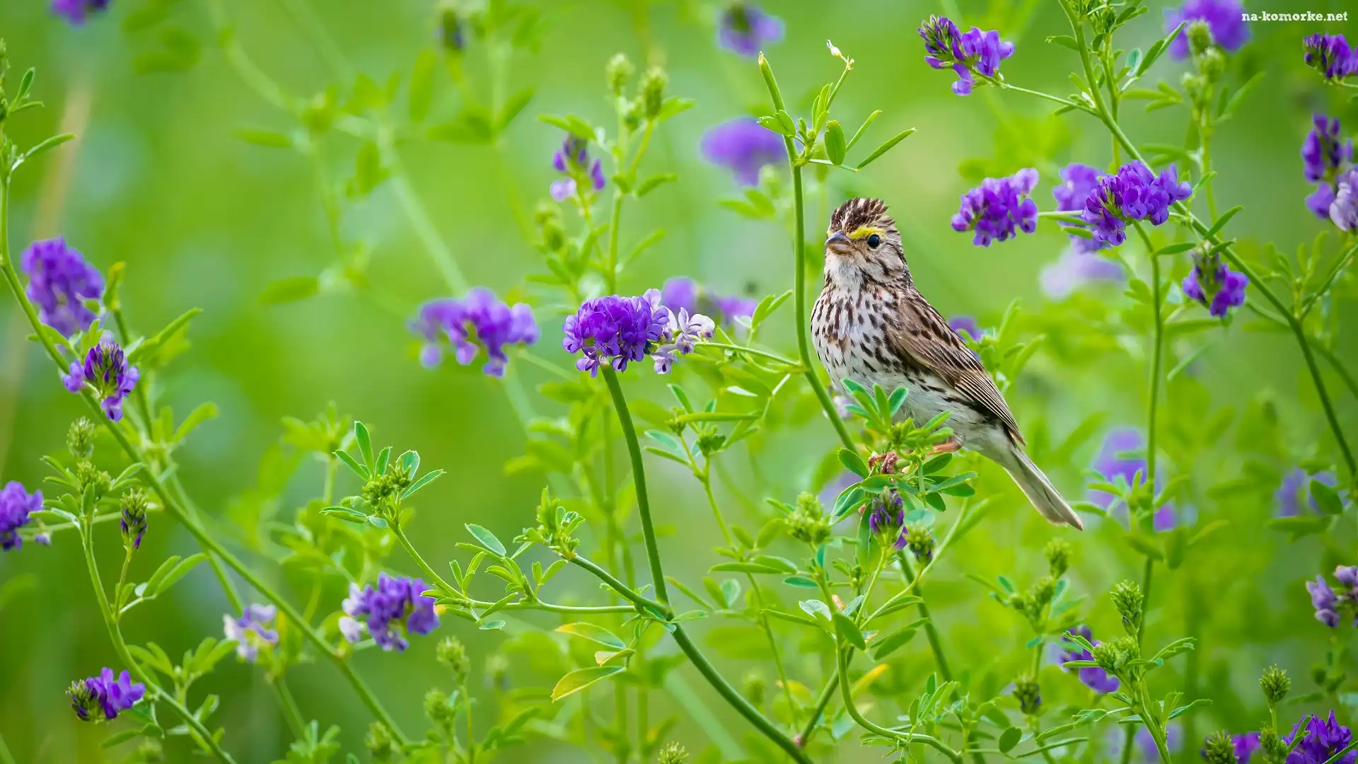 Fioletowe, Kwiaty, Ptak na Komórkę