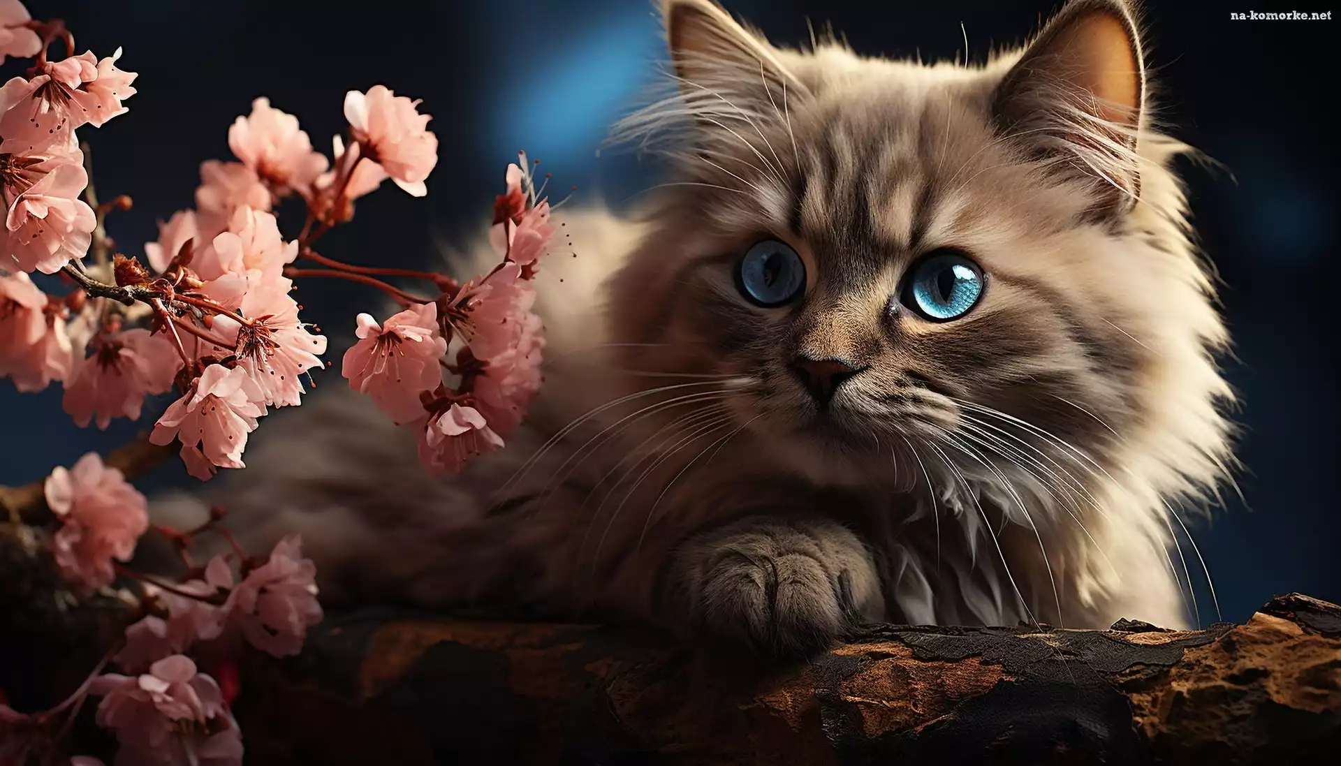Kot, Kwiaty, Gałązki, Niebieskooki, Różowe na Komórkę