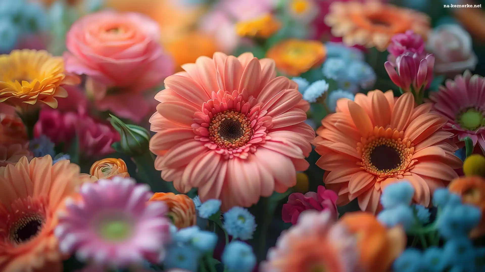 Gerbery, Róże, Kolorowe, Kwiaty na Komórkę