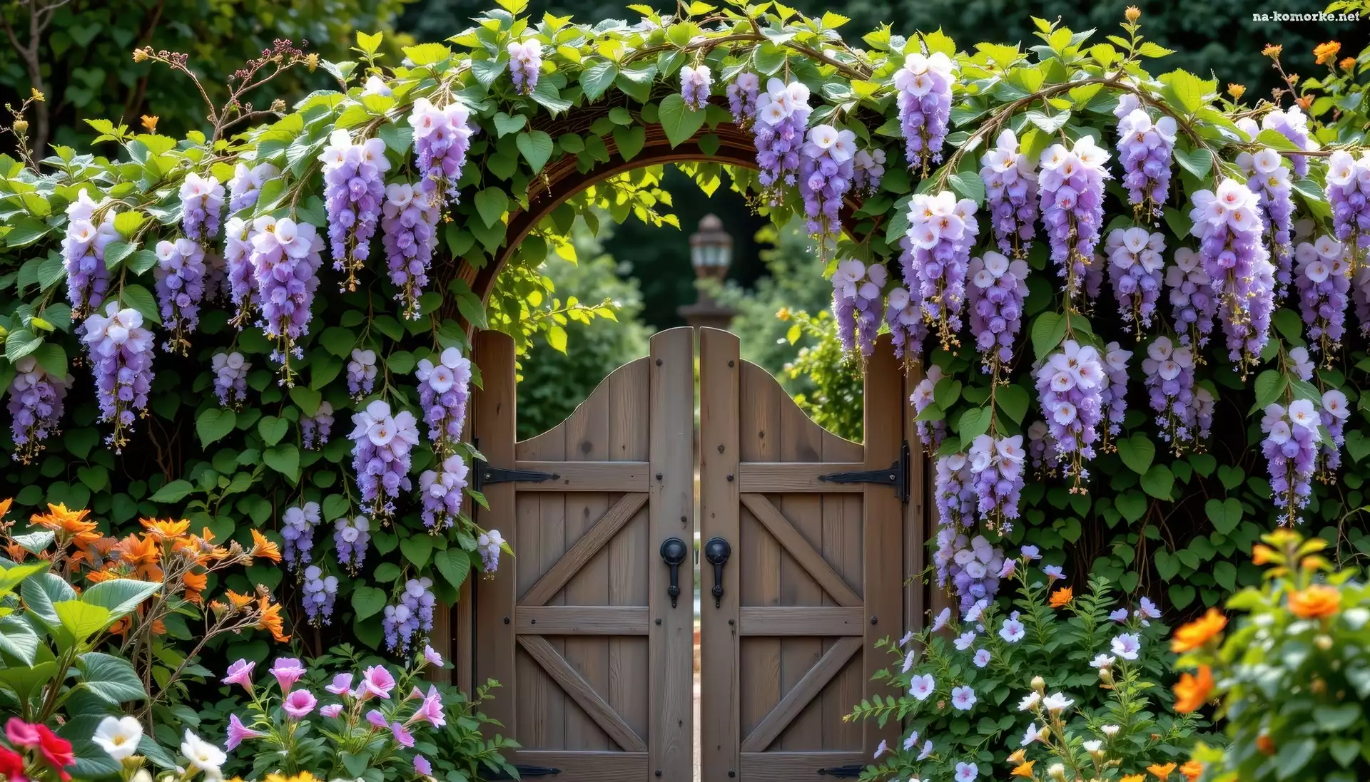 Glicynia, Brama, Ogród, Kwiaty na Komórkę
