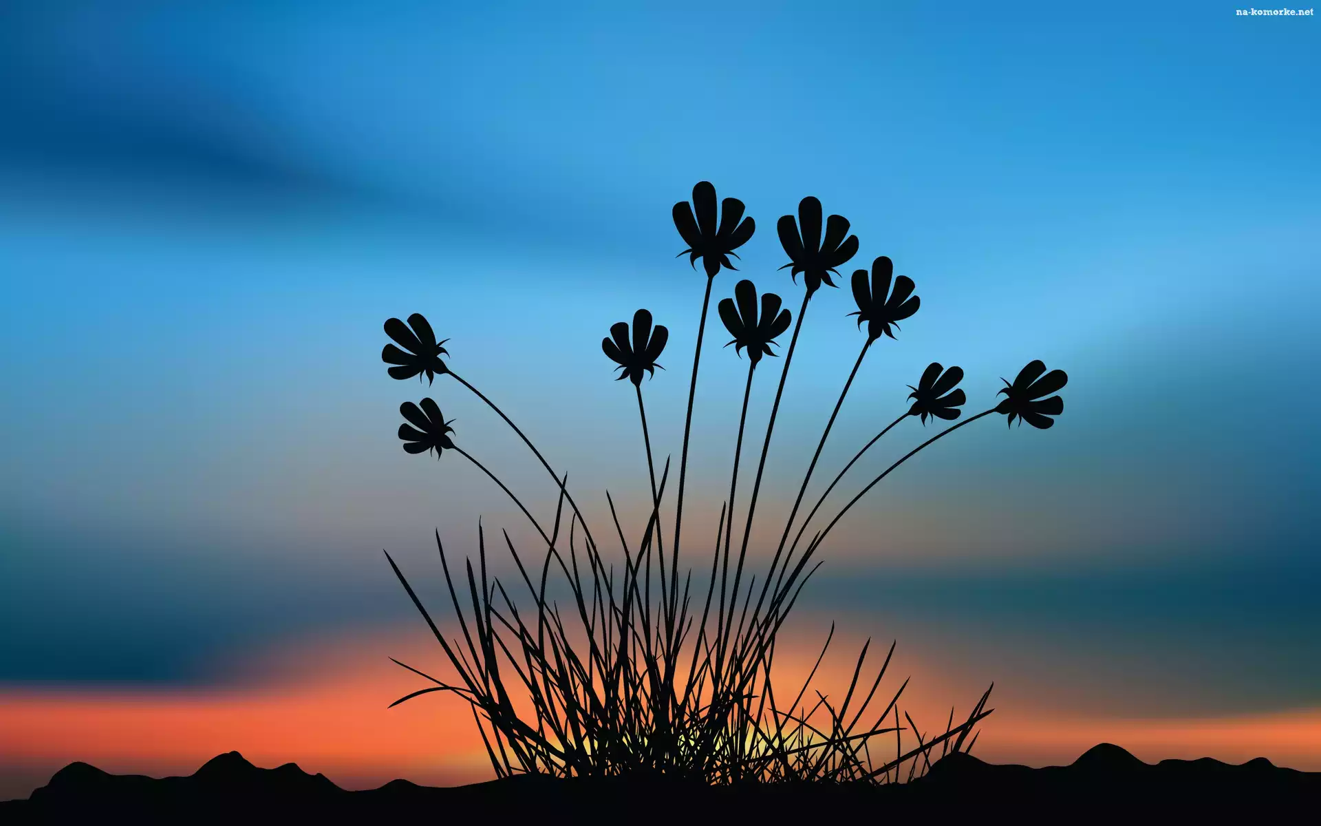 Kwiaty, Słońca, Góry, Zachód na Komórkę