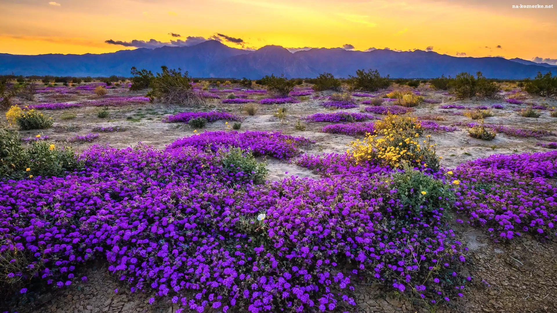 Kwiaty, Stany Zjednoczone, Park Stanowy Anza Borrego, Krzewy, Góry, Kalifornia na Komórkę
