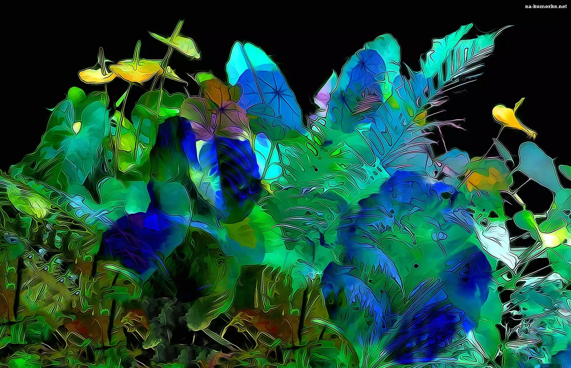 Grafika, Kwiaty, Liście na Komórkę