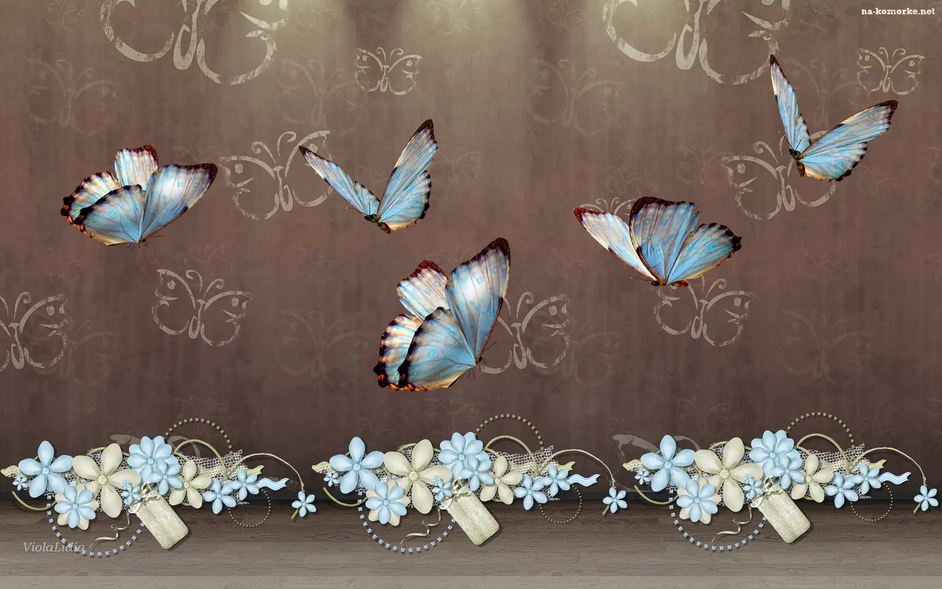 Grafika, Kwiaty, Motyle na Komórkę