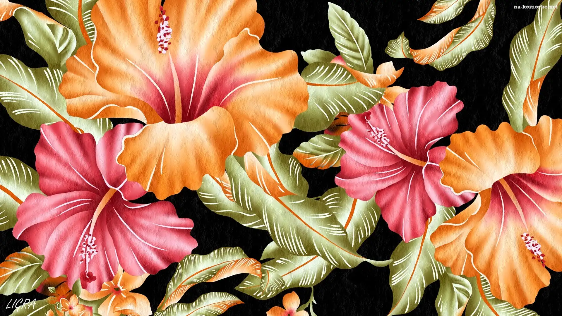 Kwiaty, 2D, Hibiskusy na Komórkę