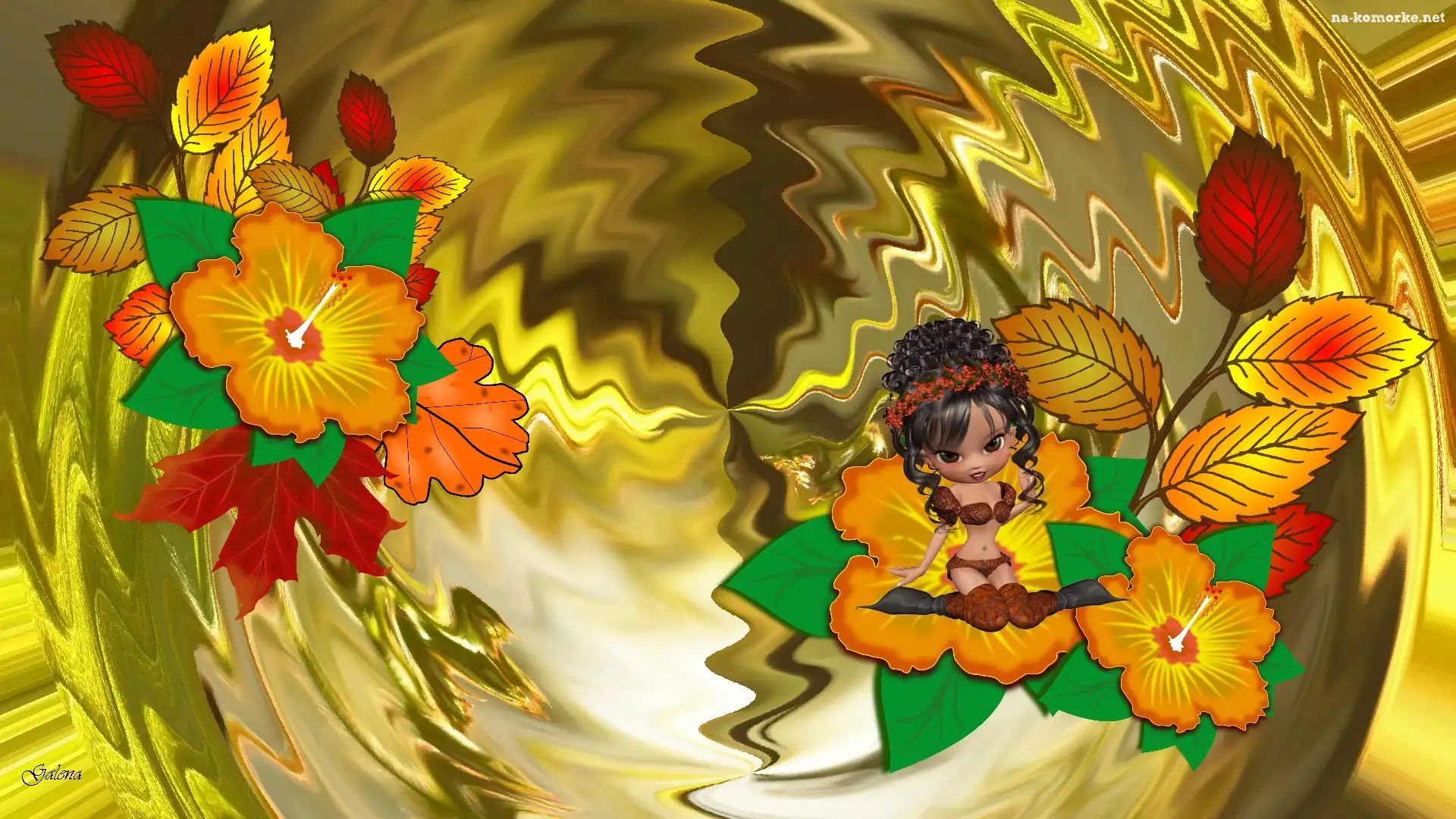 Kwiaty, Laleczka, Jesienne, Liście na Komórkę