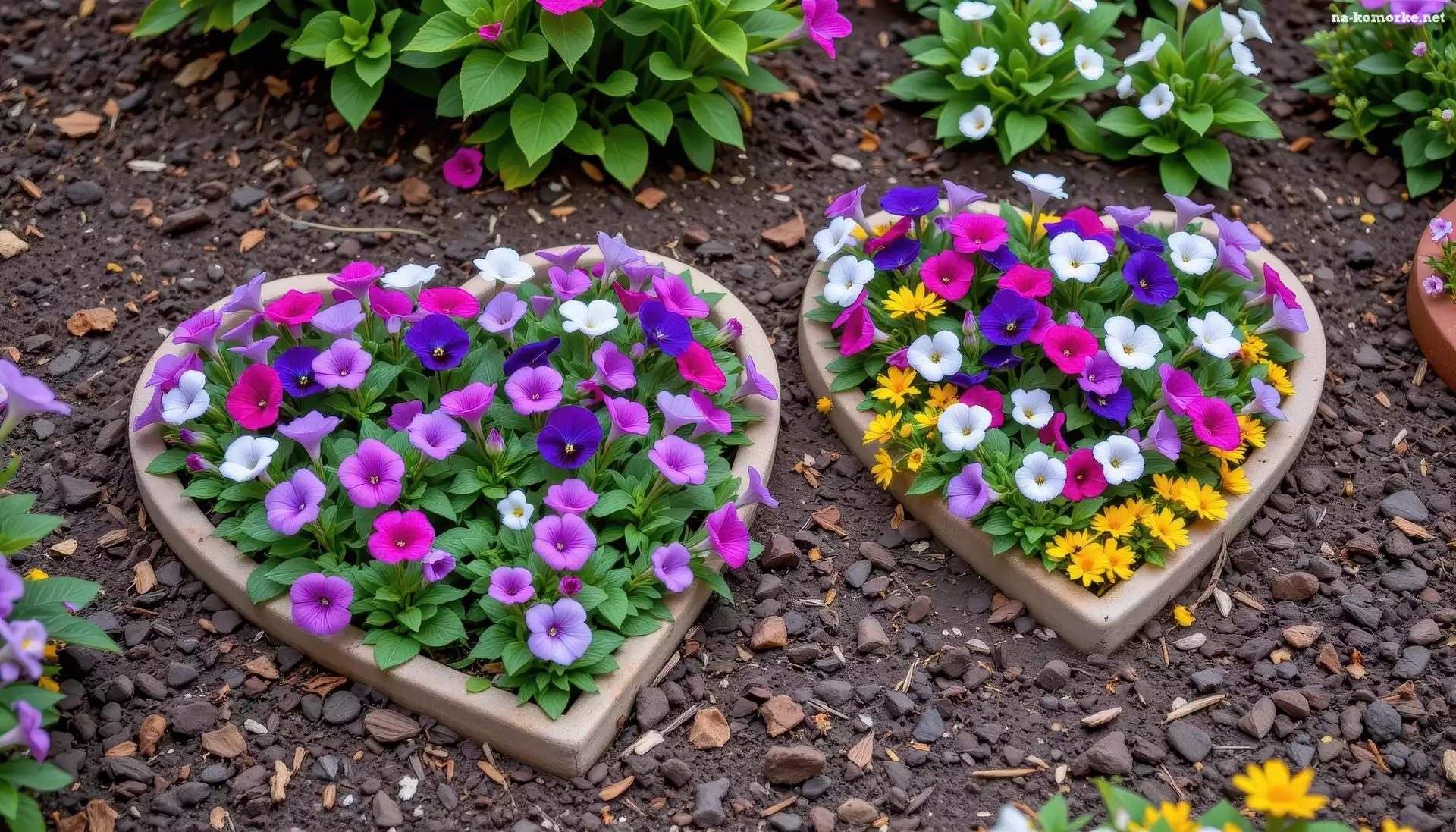Klomby, Serca, Kolorowe, Kwiaty na Komórkę