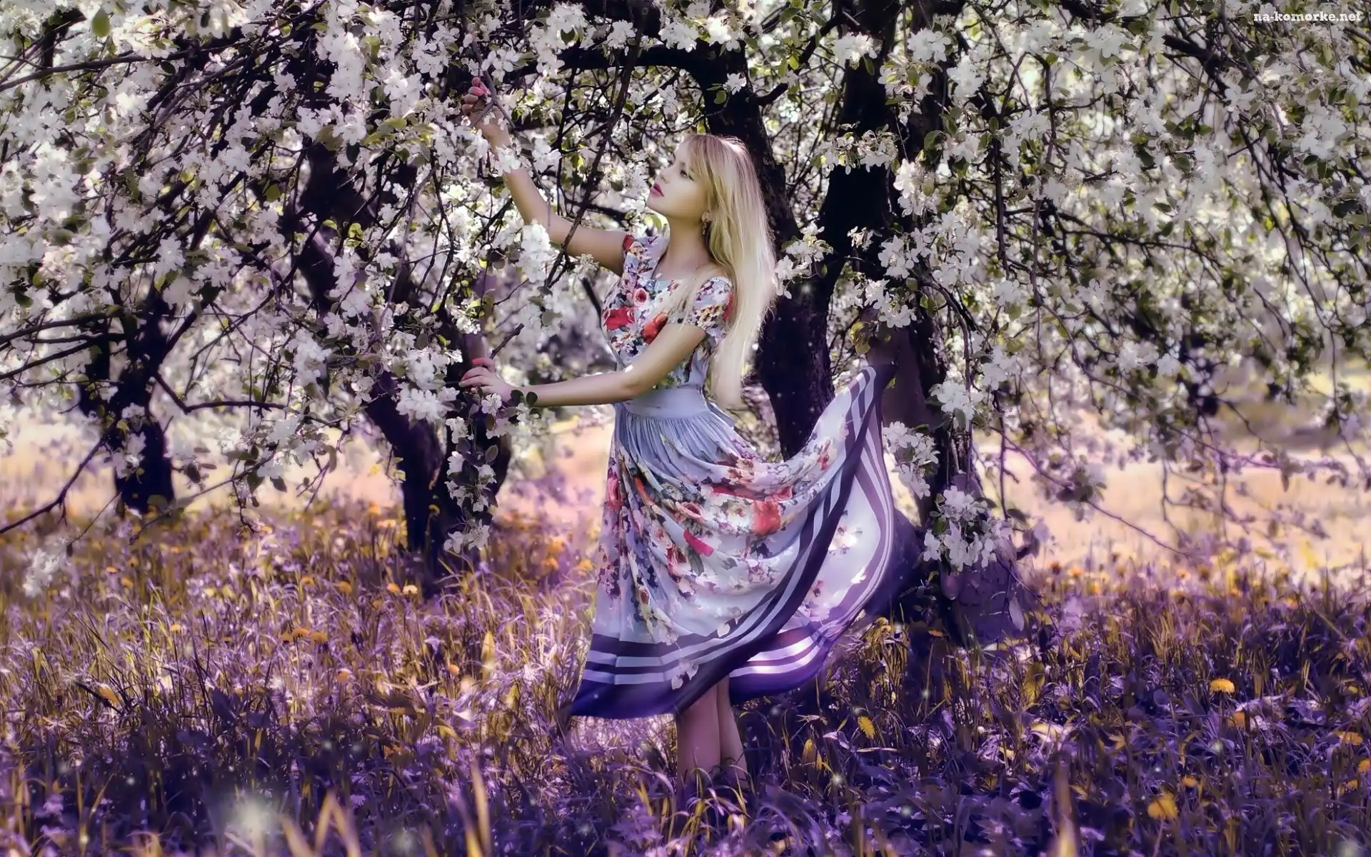 Kobieta, Kwiaty, Wiosna, Blondynka, Ogród, Kwitnące, Drzewa na Komórkę