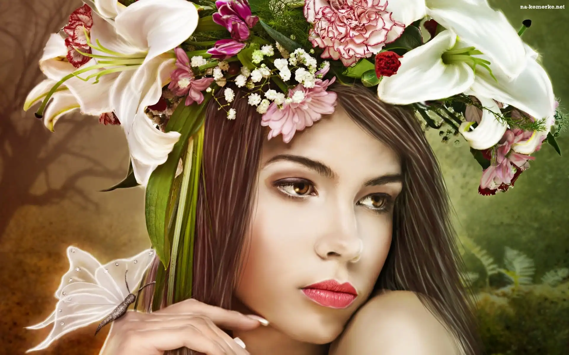 Kobieta, Kwiaty, Motyl na Komórkę