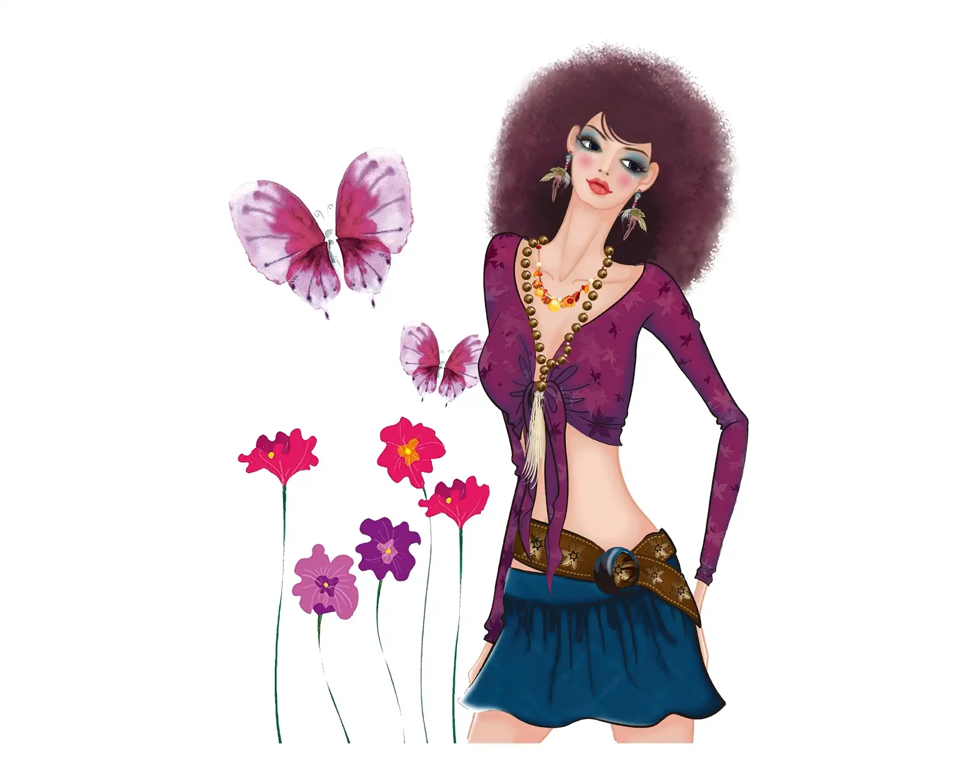 Kobieta, Kwiaty, Motyl na Komórkę