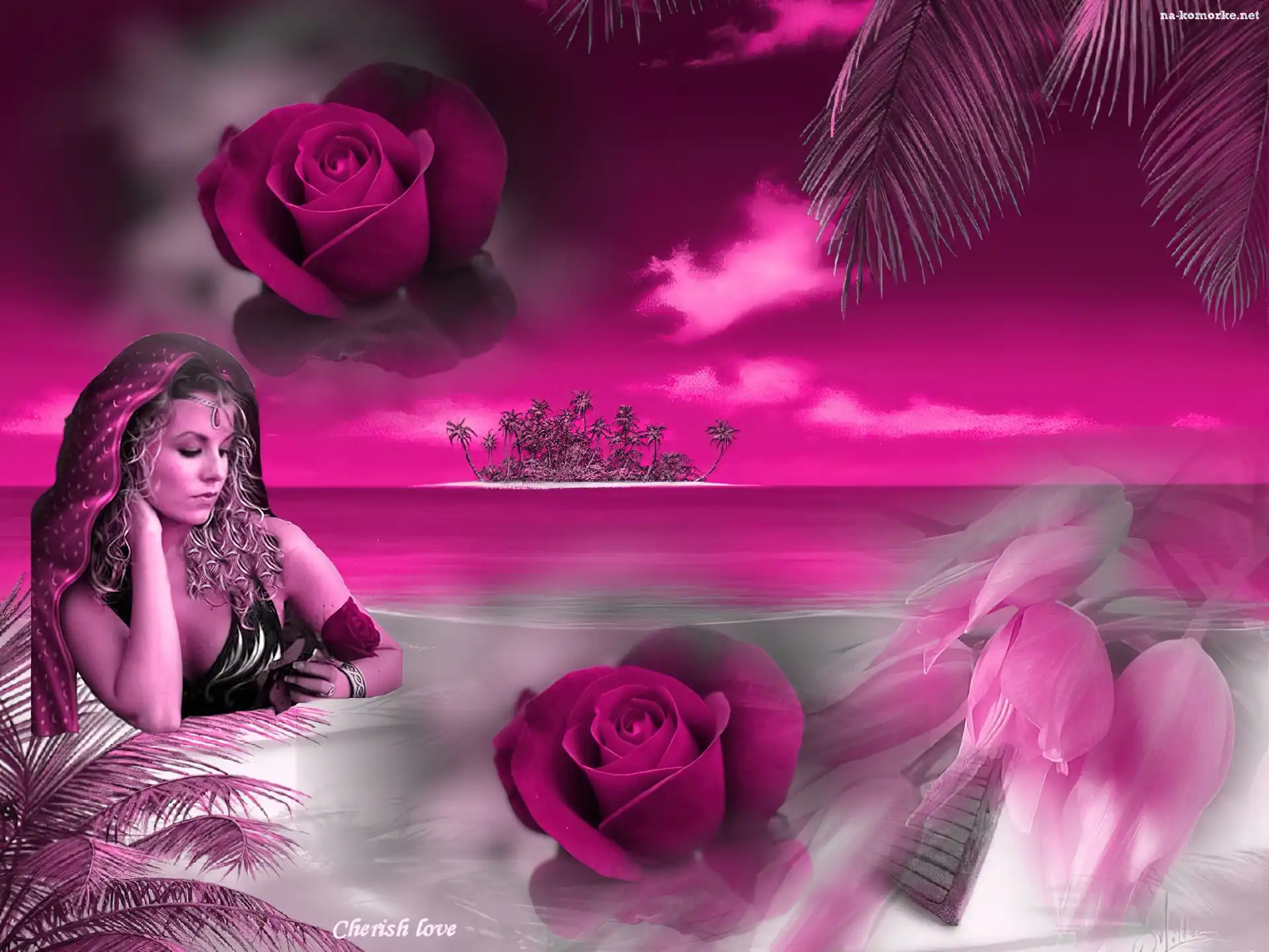 Kobieta, Kwiaty, Palmy na Komórkę