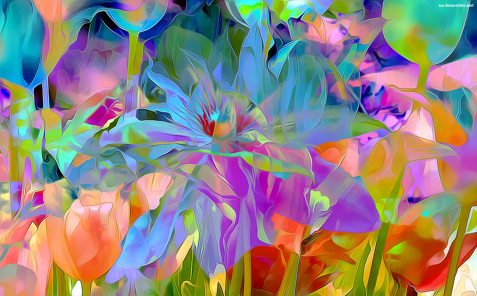 Kolorowe, Kwiaty, Fractalius na Komórkę