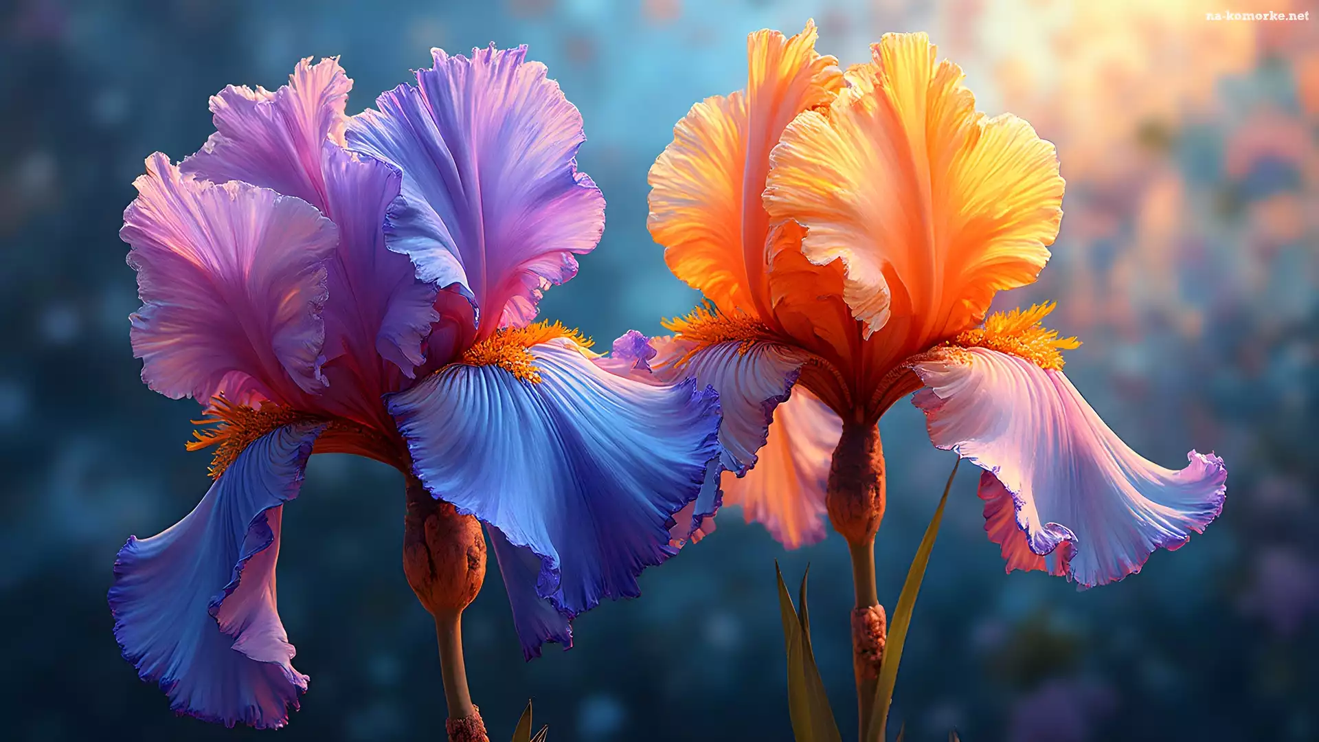 Dwa, Kwiaty, Kolorowe, Irysy, Grafika na Komórkę