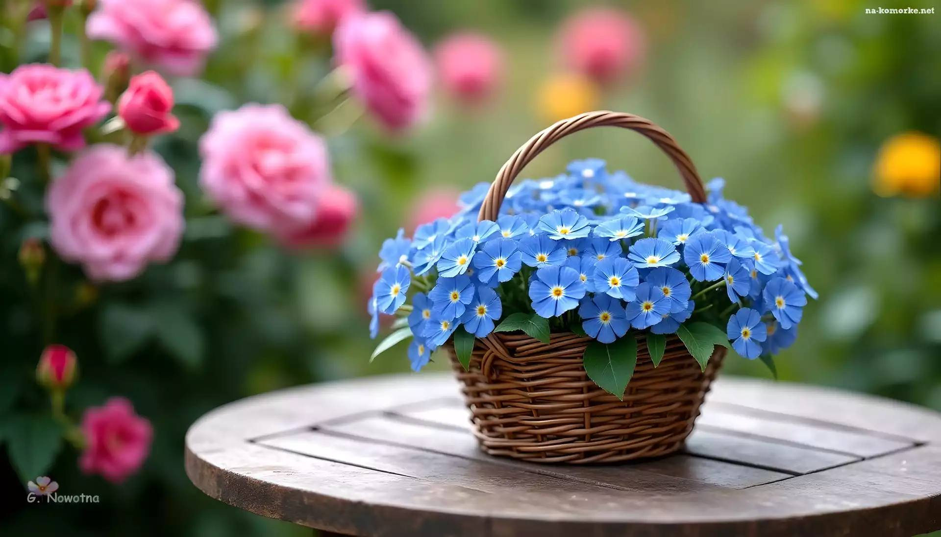 Koszyk, Grafika, Niebieskie, Kwiaty na Komórkę