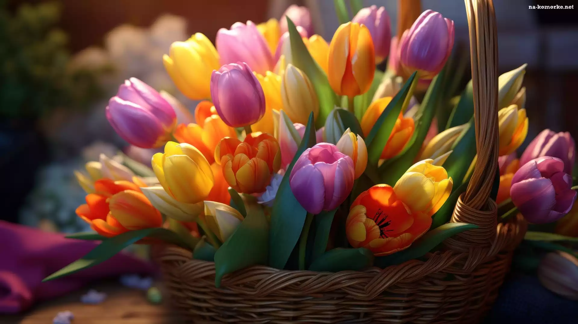 Tulipany, Kwiaty, Koszyk, Kolorowe, Światło na Komórkę