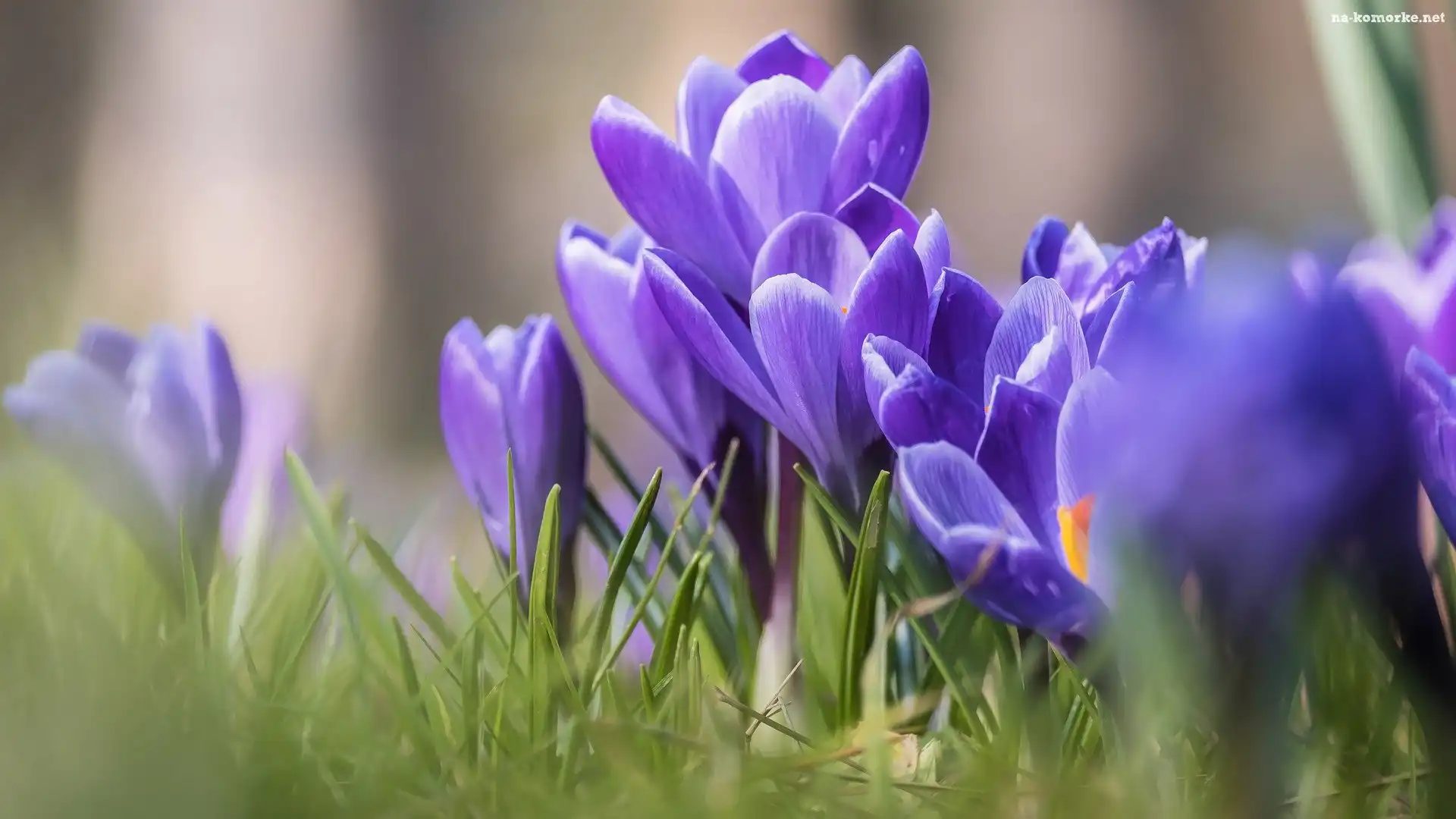 Krokusy, Trawa, Fioletowe, Kwiaty na Komórkę