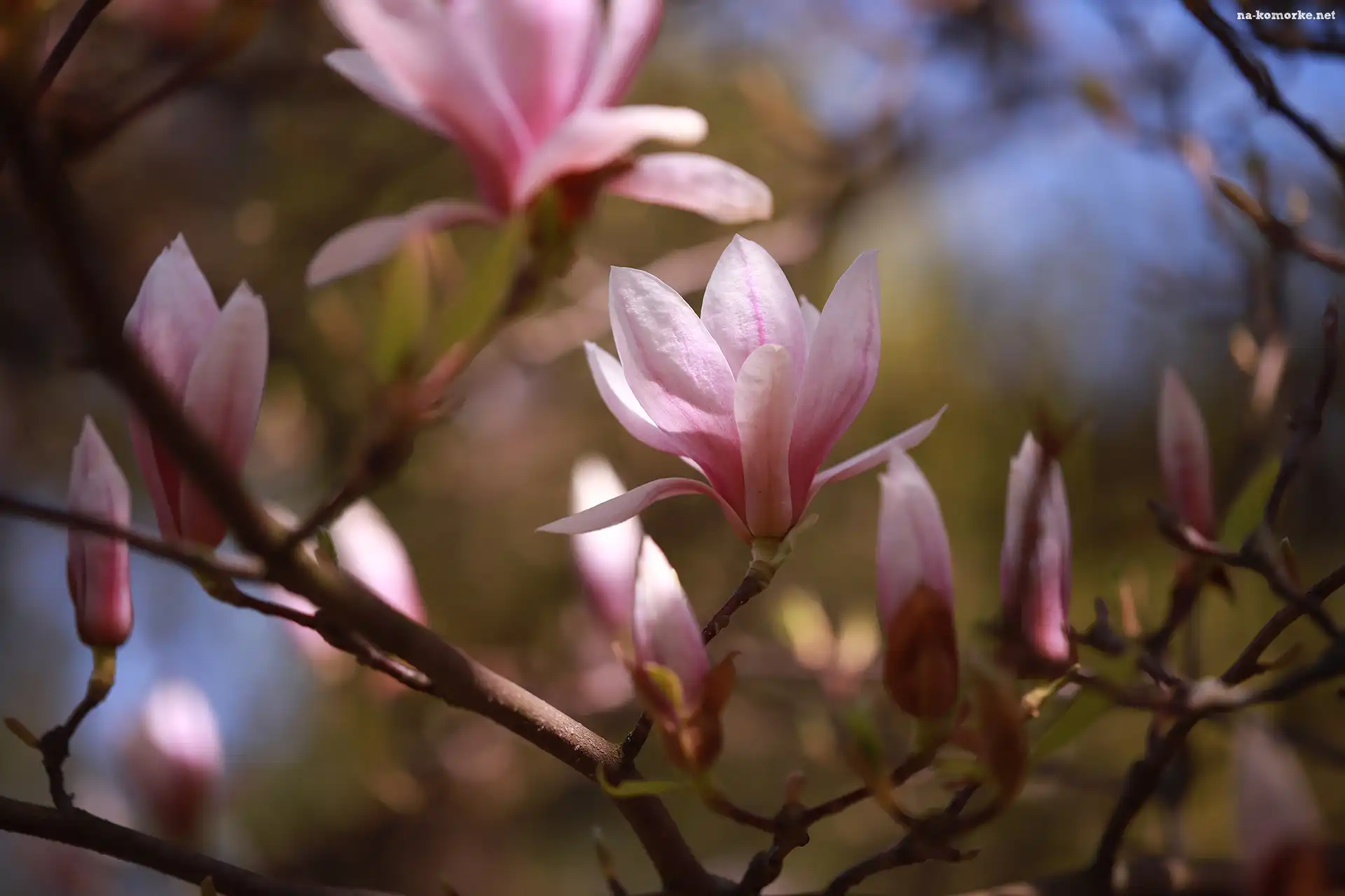 Różowe, Kwiaty, Krzew, Magnolie, Gałązki na Komórkę
