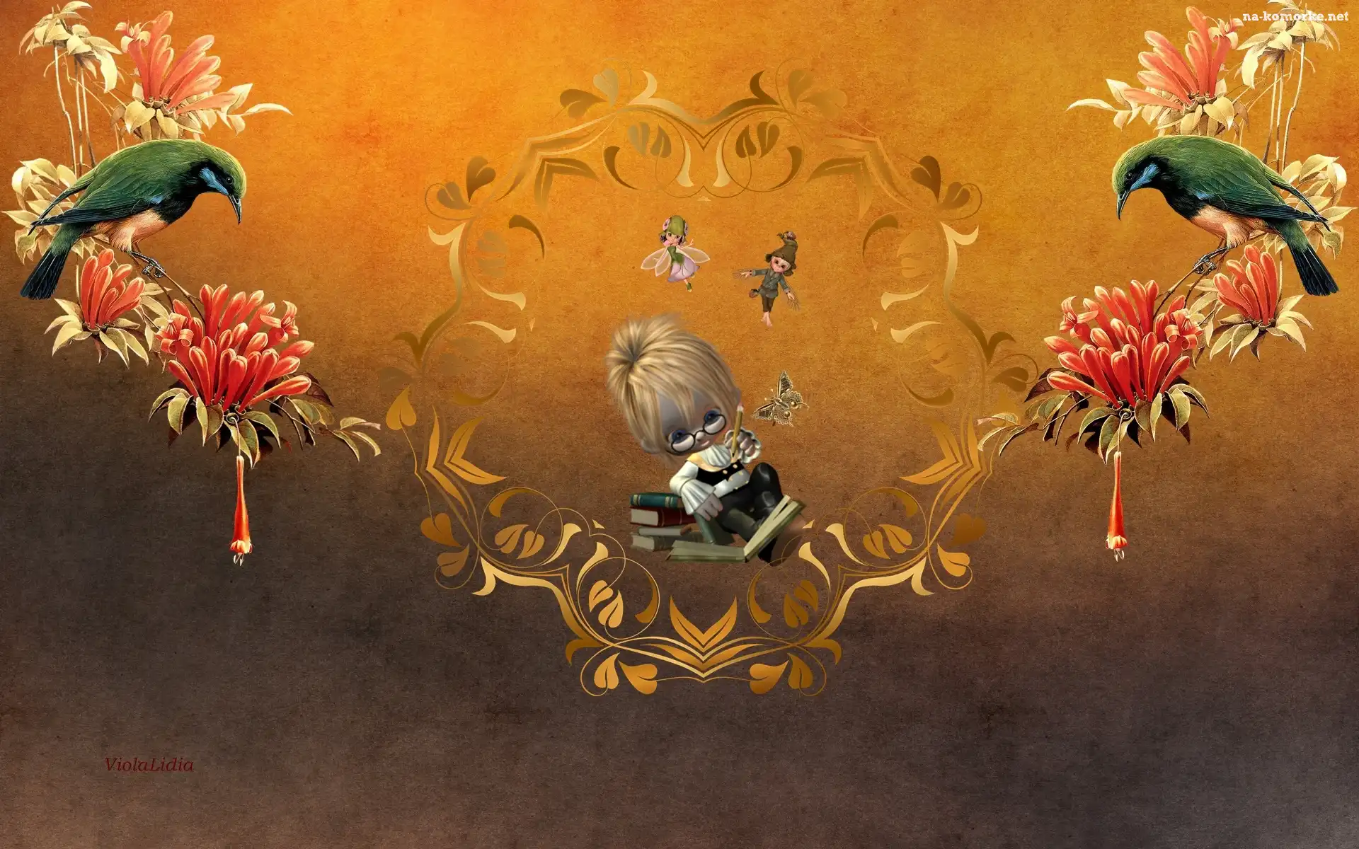 Kwiaty, Grafika, Laleczka, Książki, Ptaki na Komórkę