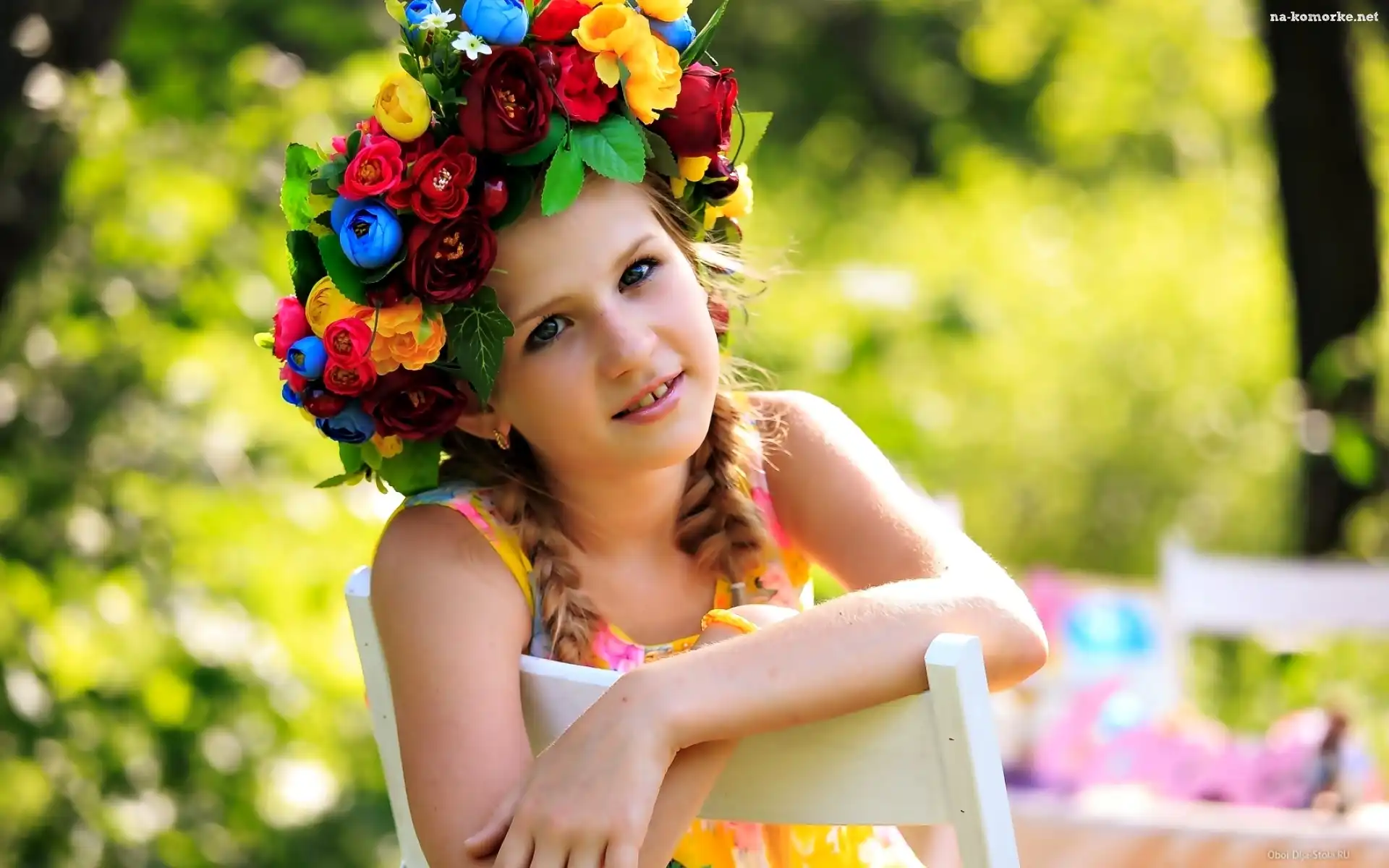 Kwiaty, Dziecko, Dziewczynka, Lato, Wianek na Komórkę