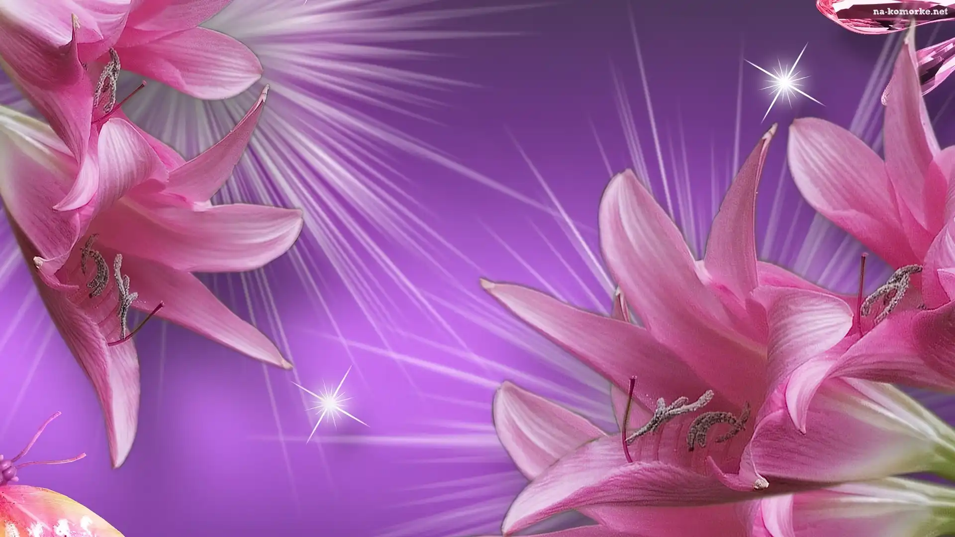 Kwiaty, Światła, Lilie, Promienie na Komórkę