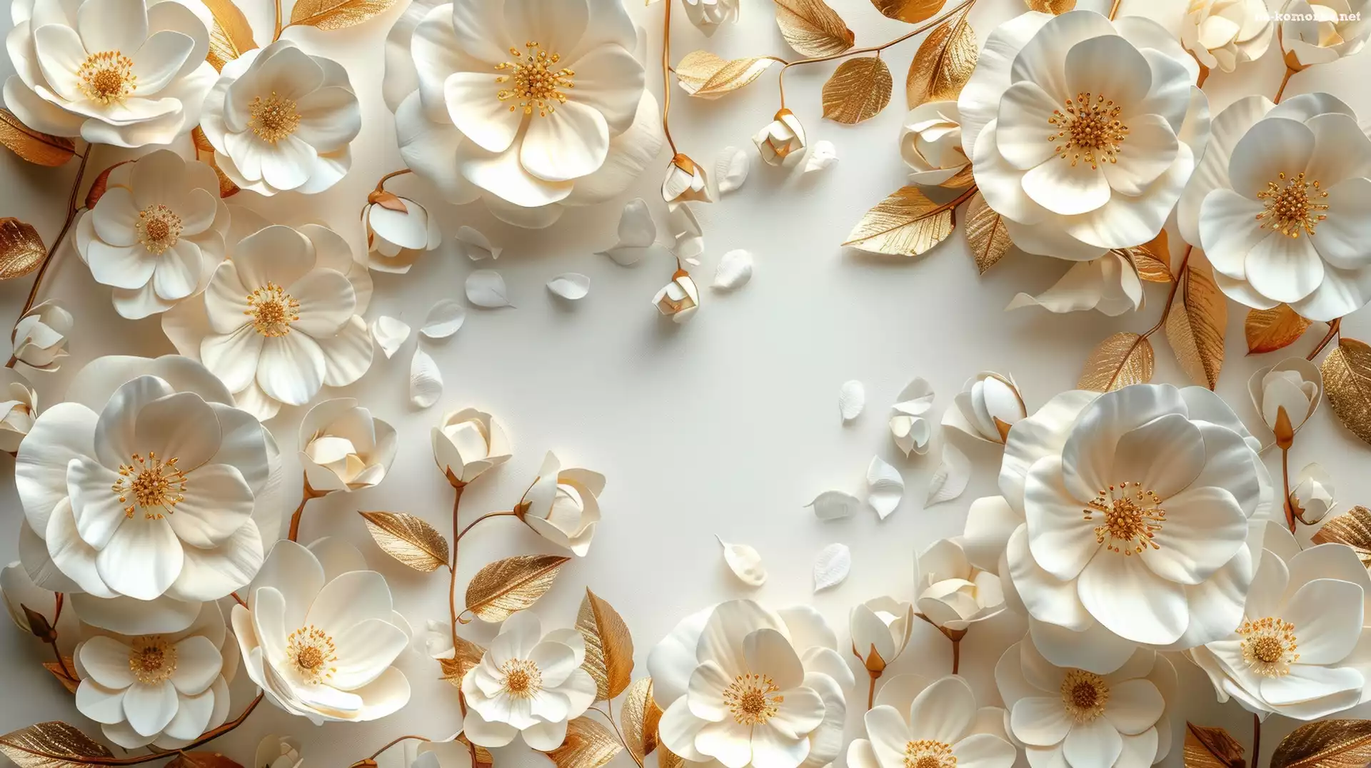 Białe, Kwiaty, Liście, Złote, Grafika na Komórkę