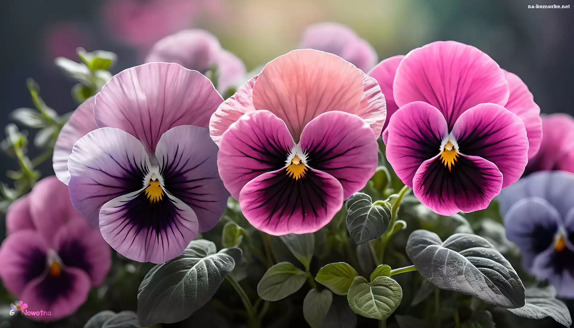Różowe, Kwiaty, Listki, Bratki, Grafika na Komórkę