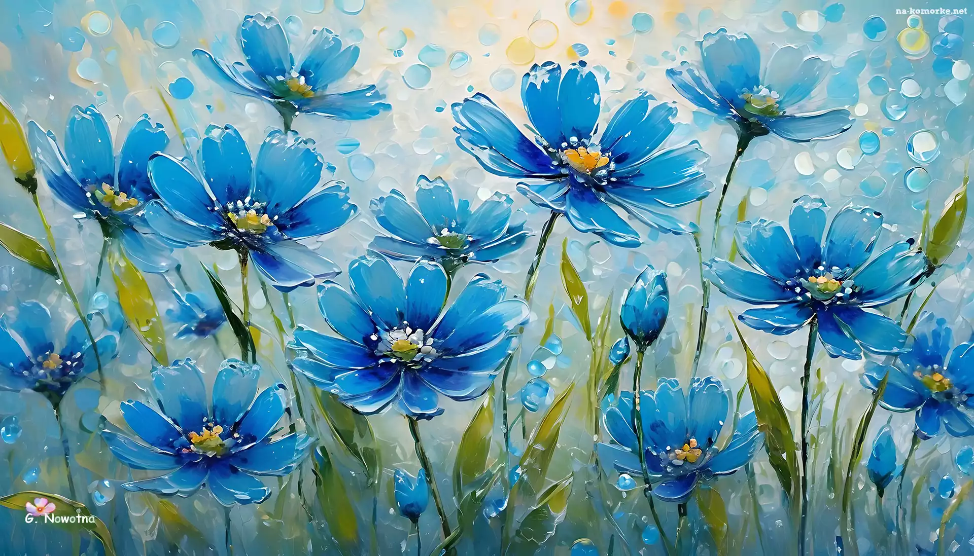 Listki, Grafika, Niebieskie, Kwiaty na Komórkę