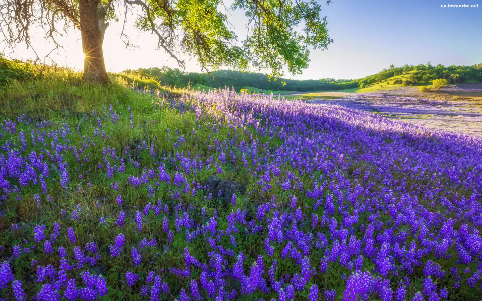 Łubin, Drzewo, Łąka, Kwiaty na Komórkę