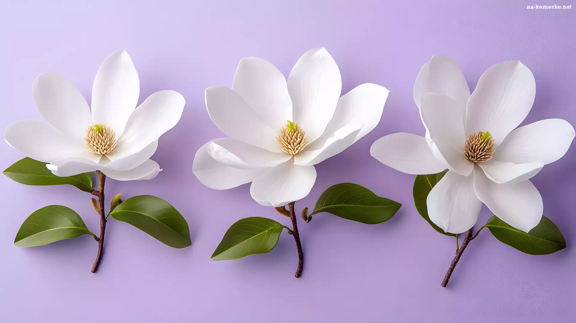 Trzy, Kwiaty, Magnolie, Białe, Listki na Komórkę