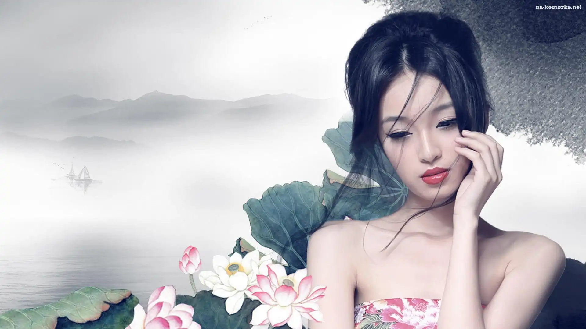 Kwiaty, Azjatka, Kobieta, Góry, Makijaż, Mgła na Komórkę