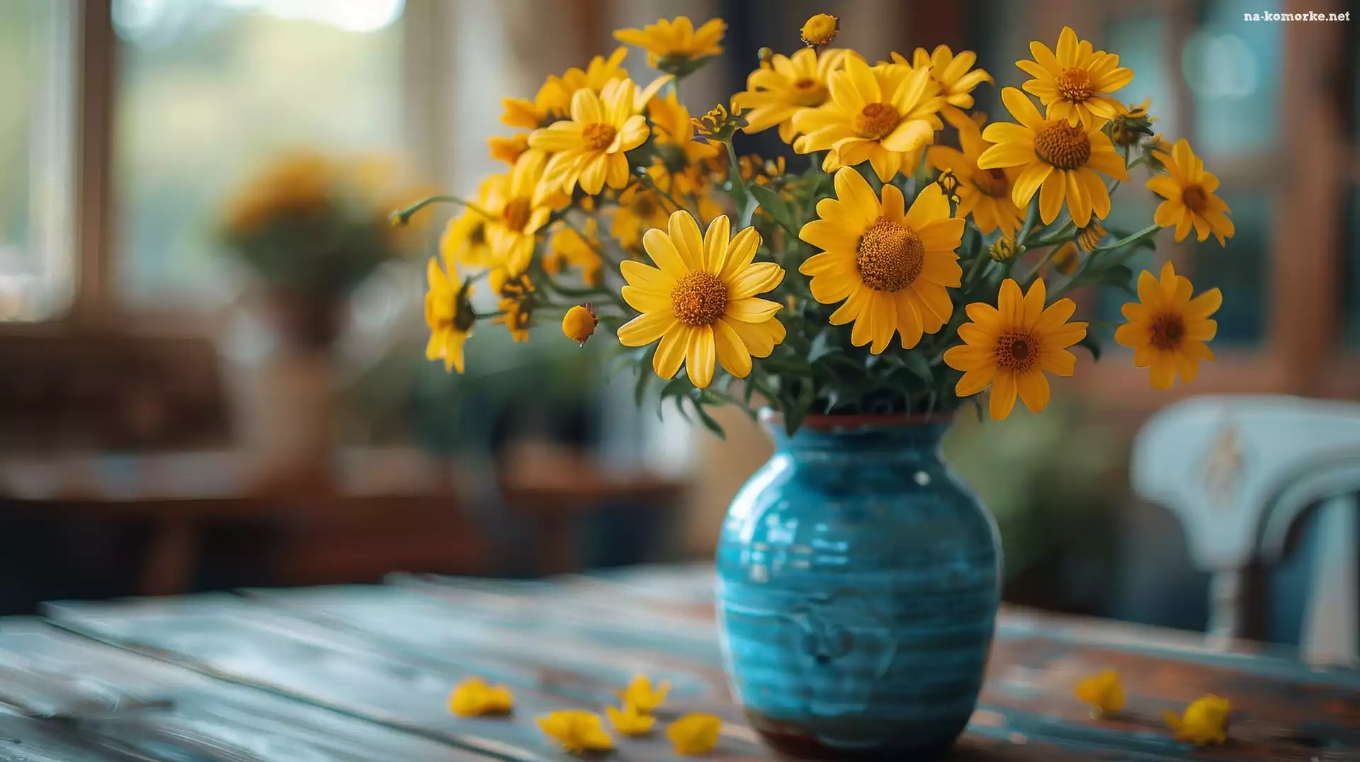 Bukiet, Kwiaty, Niebieski, Żółte, Wazon na Komórkę