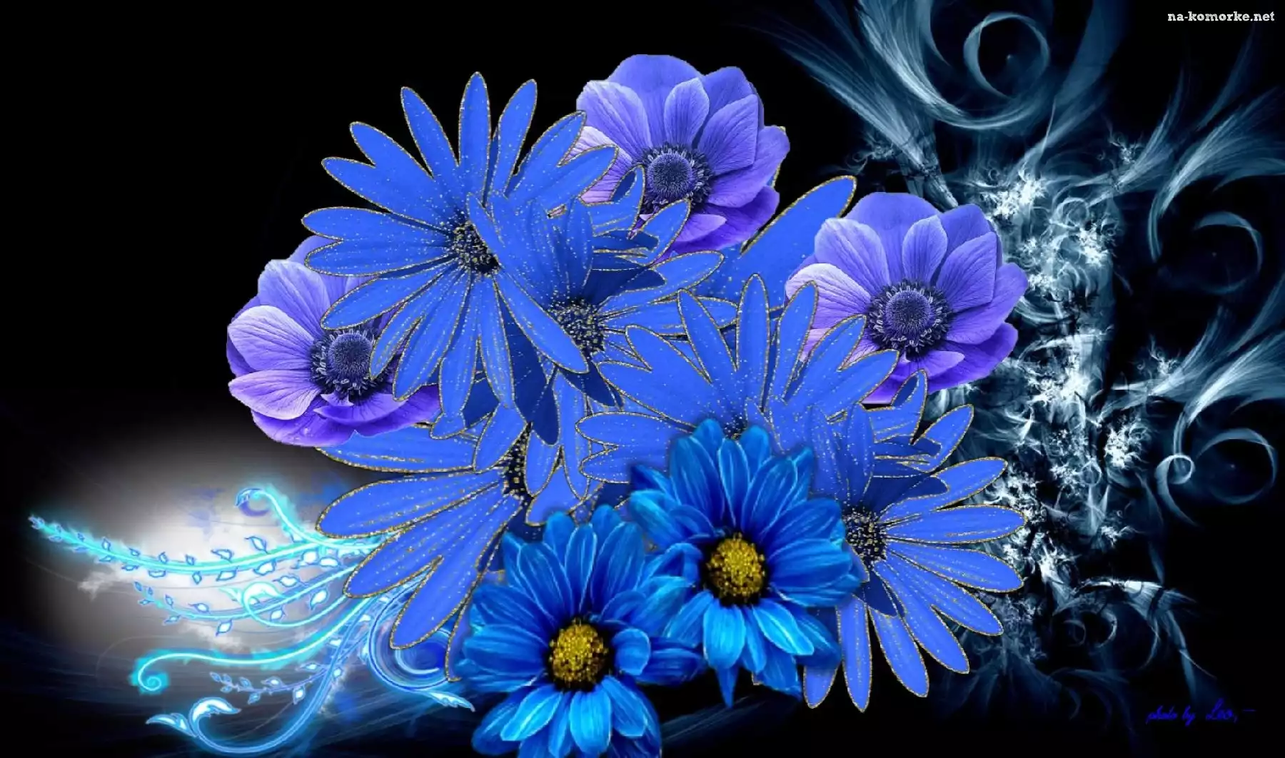 Niebieskie, Kwiaty, Grafika na Komórkę