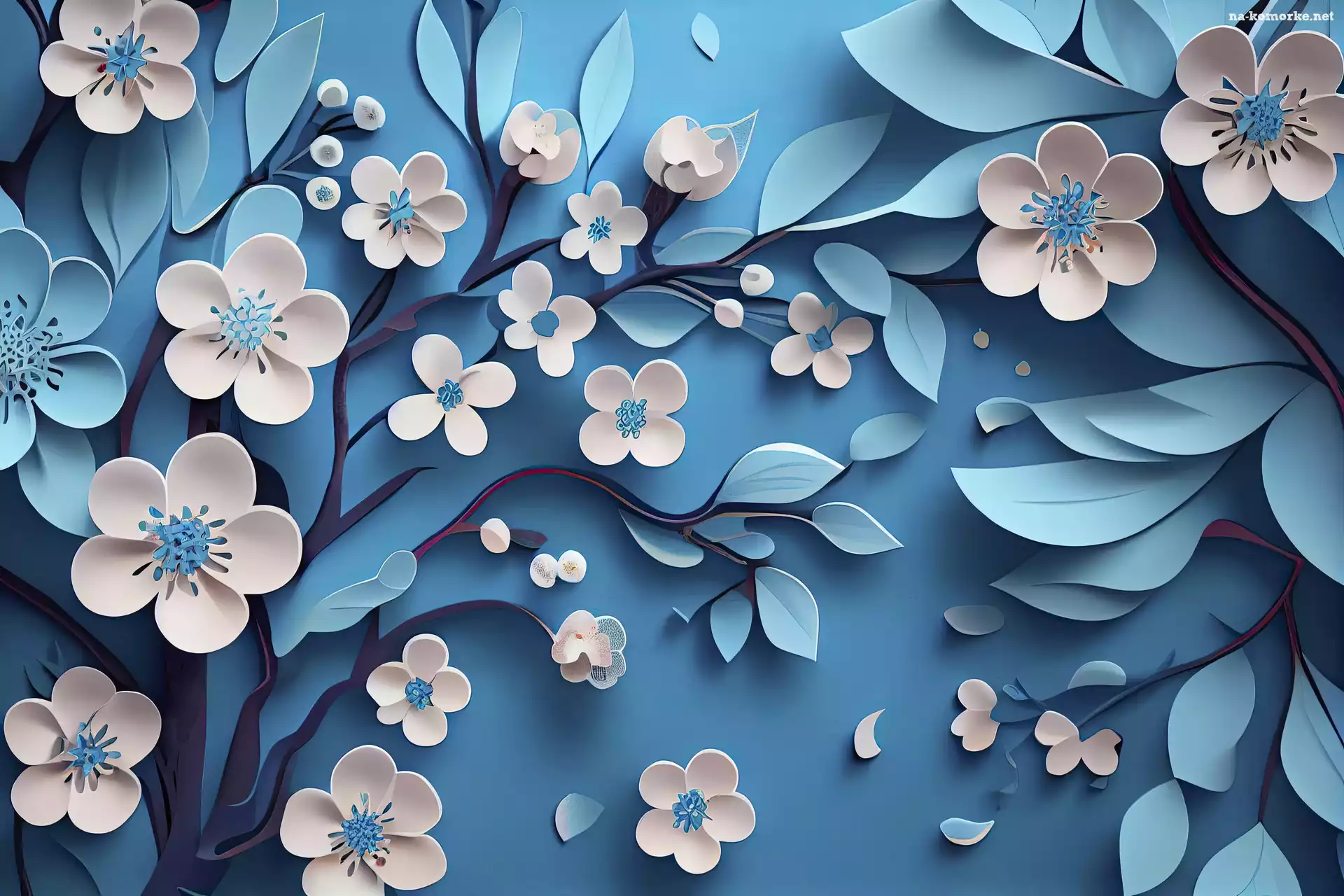 Grafika, Kwiaty, Niebieskie, Białe, Tło na Komórkę