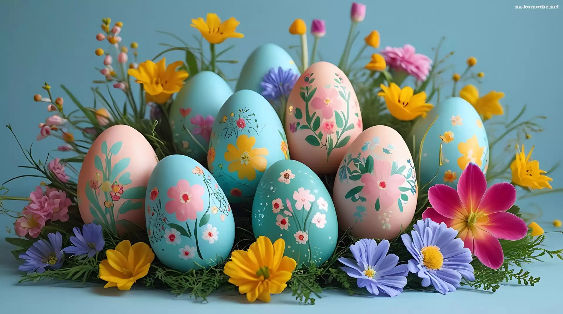 Wielkanoc, Kwiaty, Niebieskie, Pisanki, Tło na Komórkę