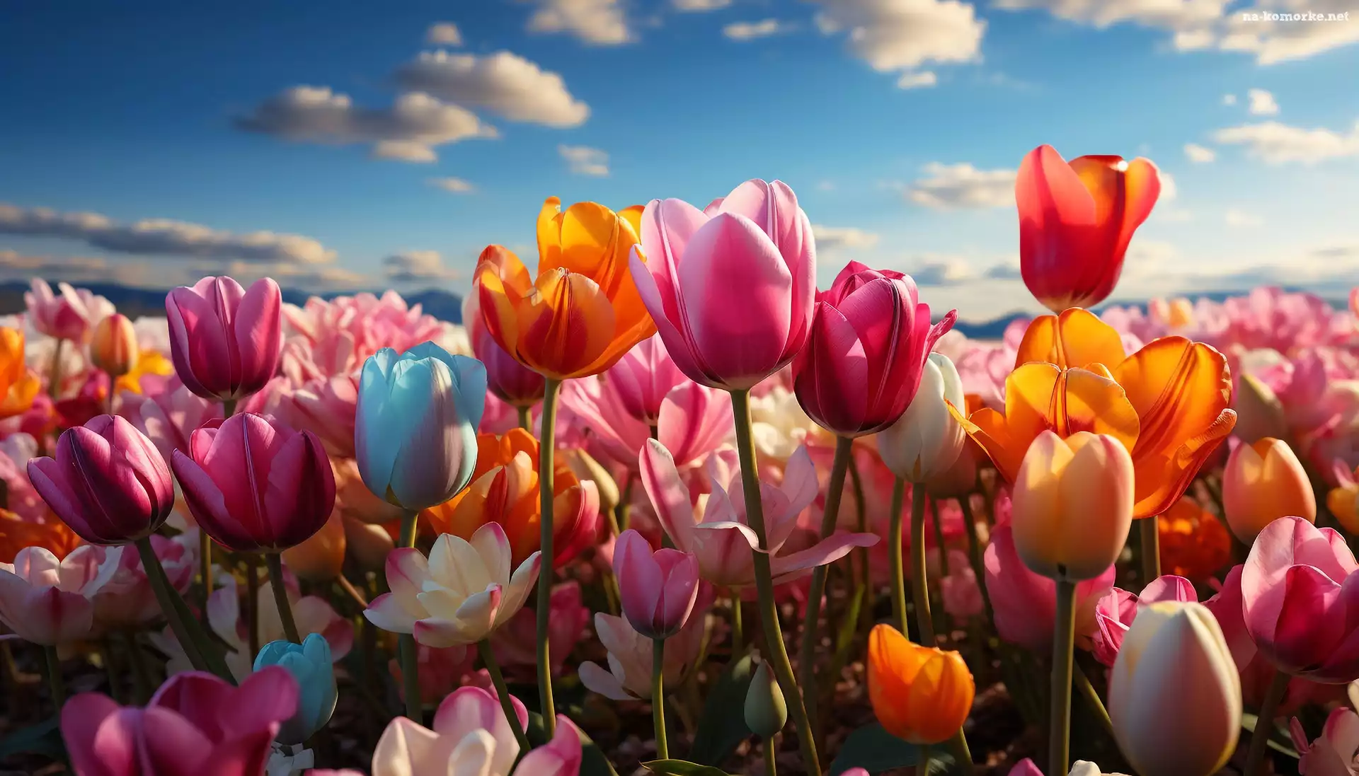 Tulipany, Kwiaty, Niebo, Kolorowe, Grafika na Komórkę