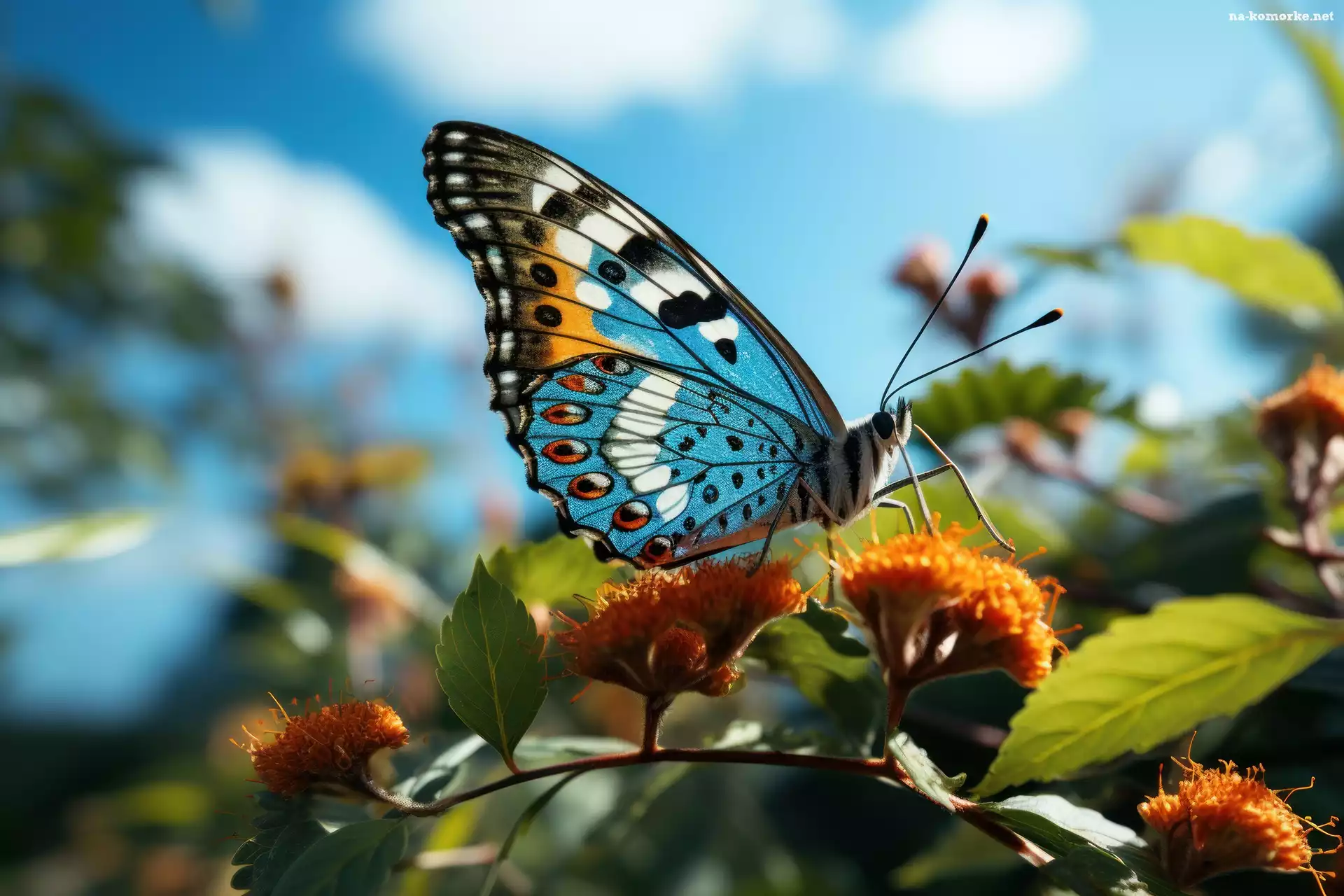 Motyl, Kwiaty, Niebo, Roślina, Grafika na Komórkę