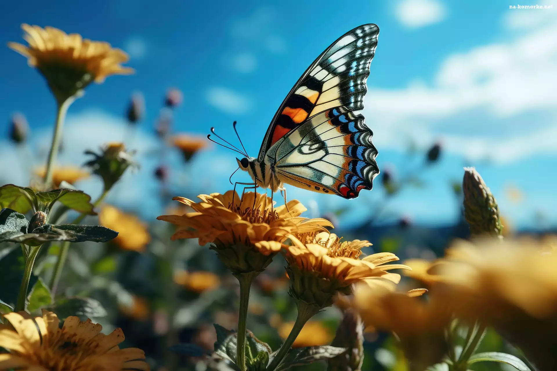 Niebo, Grafika, Motyl, Kwiaty na Komórkę