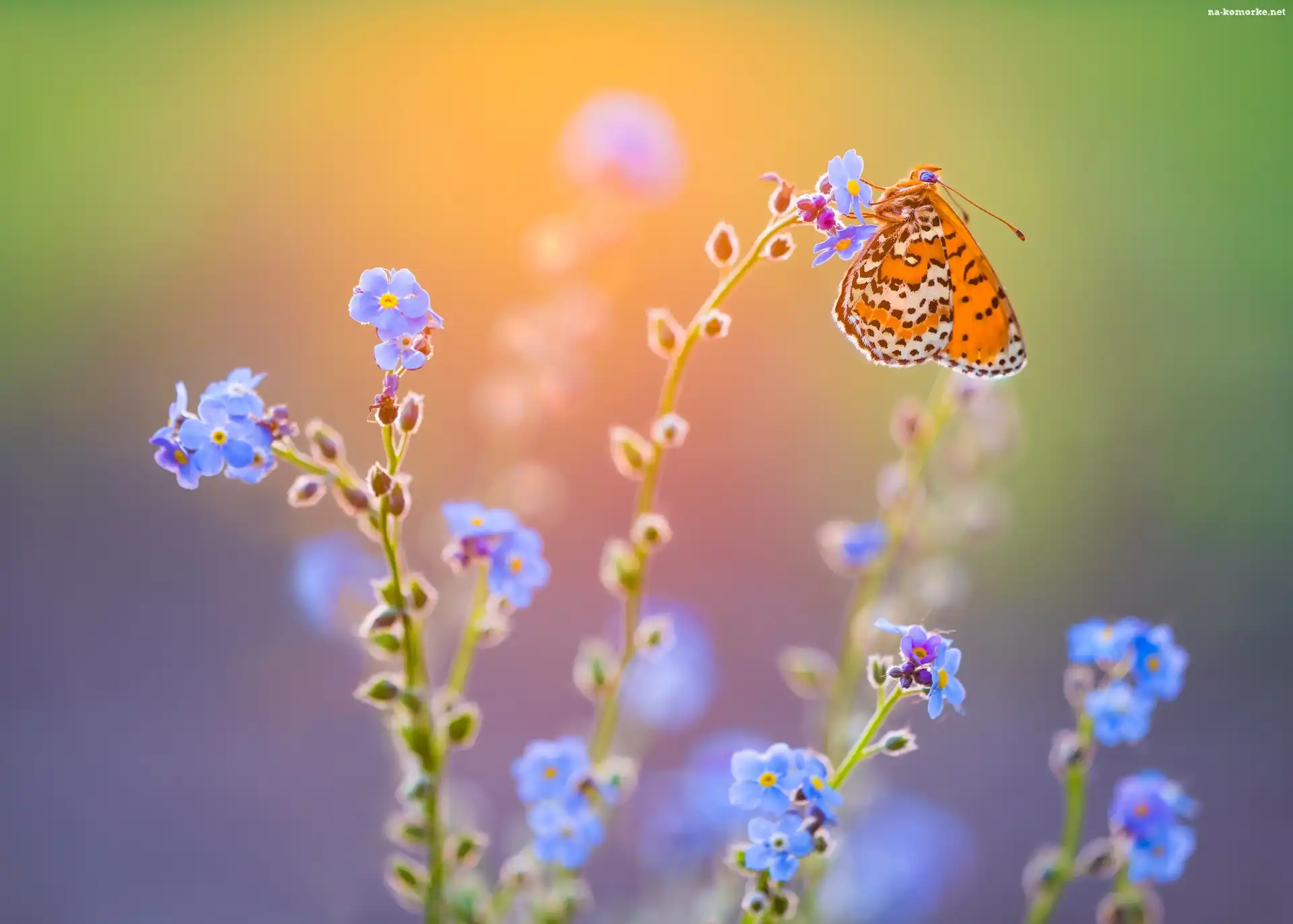 Kwiaty, Przeplatka didyma, Niezapominajki, Motyl na Komórkę