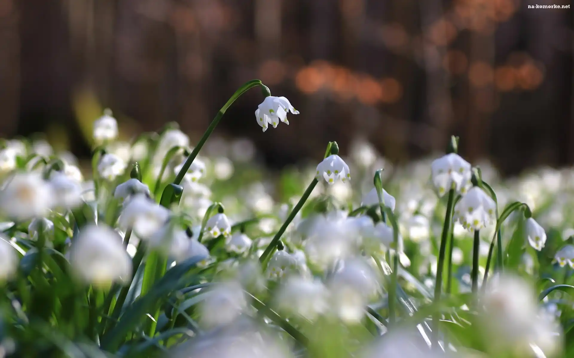 Kwiaty, Las, Śnieżyce, Światło na Komórkę